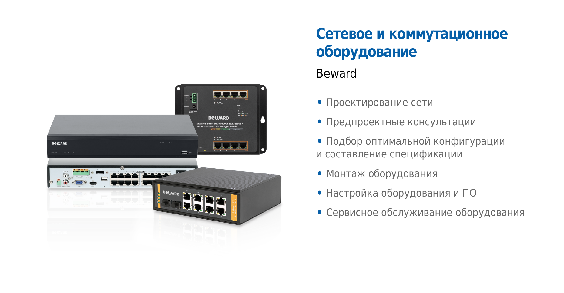В системах IP-видеонаблюдения для передачи данных очень важную роль играют Ethernet коммутаторы. Коммутаторы BEWARD используются в системах видеонаблюдения при решении задач различного уровня.